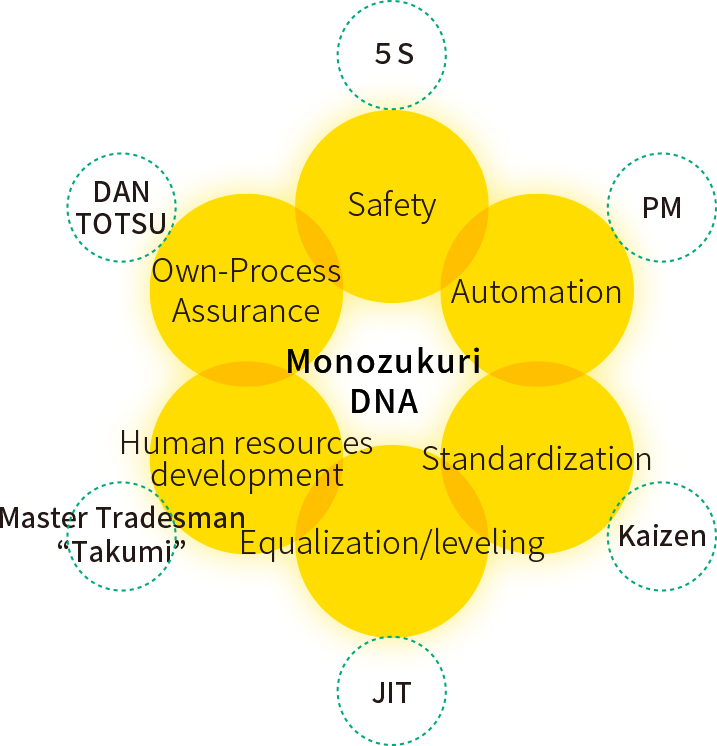 = Unique activities for manufacturing products with “dantotsu” quality (meaning “the best quality by far”)